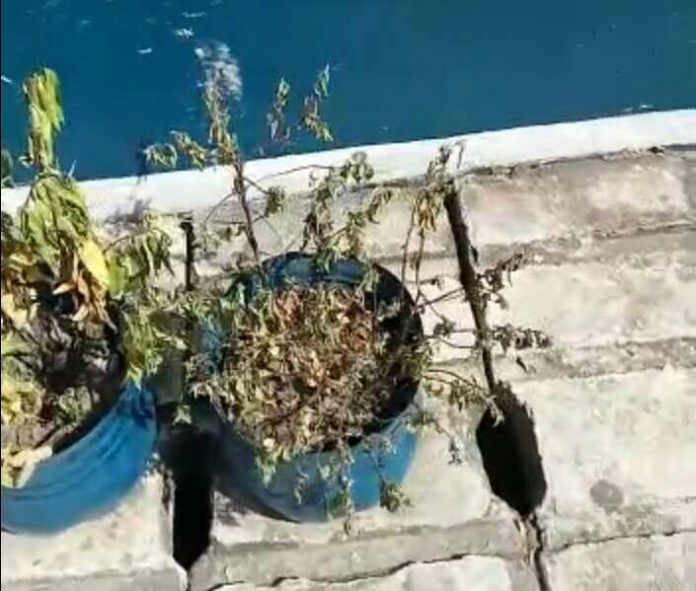 Tanaman Hias di Pintu Masuk Kelurahan Tugu Selatan Dibiarkan Kering