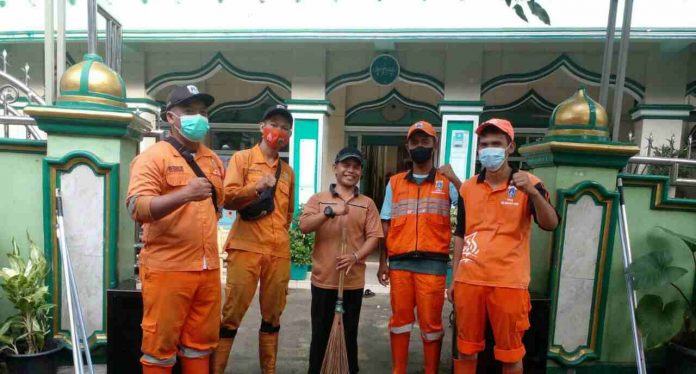 MEDIANSEAS.COM - Petugas Penanganan Prasarana dan Sarana Umum (PPSU) Kelurahan Koja membersihkan sarana dan prasarana Masjid Al Muttaqin yang berlokasi di Lorong 2 RW 04, Jumat (20/5).